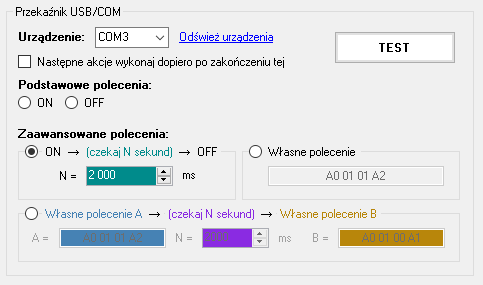 Jeśli posiadasz przekaźnik wielokanałowy to możesz skorzystać z zaawansowanych opcji – wprowadzania polecenia w formacie szesnastkowym.
